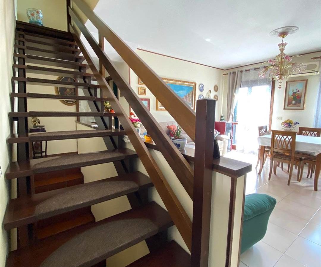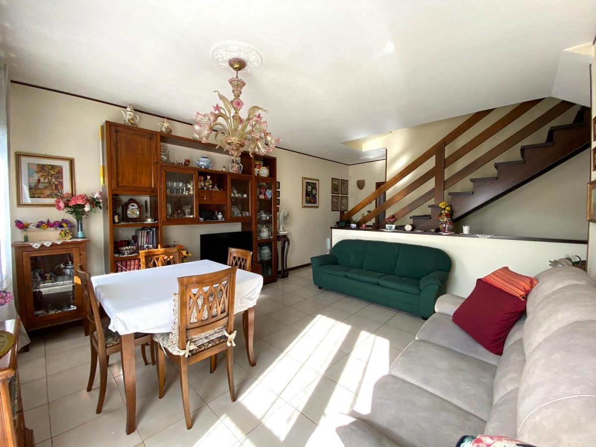 MARTELLAGO, IN ZONA CENTRALE, PORZIONE DI VILLETTA A SCHIERA CON INGRESSO INDIPENDENTE E COMPOSTA AL PIANO TERRA IN INGRESSO, MAGAZZINO/LAVANDERIA CON ACCESSO AL PORTICO E GARAGE; AL PIANO PRIMO, ACCESSIBILE DA SCALA INTERNA, DISIMPEGNO, SOGGIORNO CON TERRAZZA ABITABILE, CUCINA SEPARATA SERVITA DA POGGIOLO, BAGNO E RIPOSTIGLIO FINESTRATO; AL PIANO SECONDO, REPARTO NOTTE SUDDIVISO IN CAMERA MATRIMONIALE, CAMERA DOPPIA DI 13 MQ C.CA CON POGGIOLO, BAGNO E RIPOSTIGLIO.