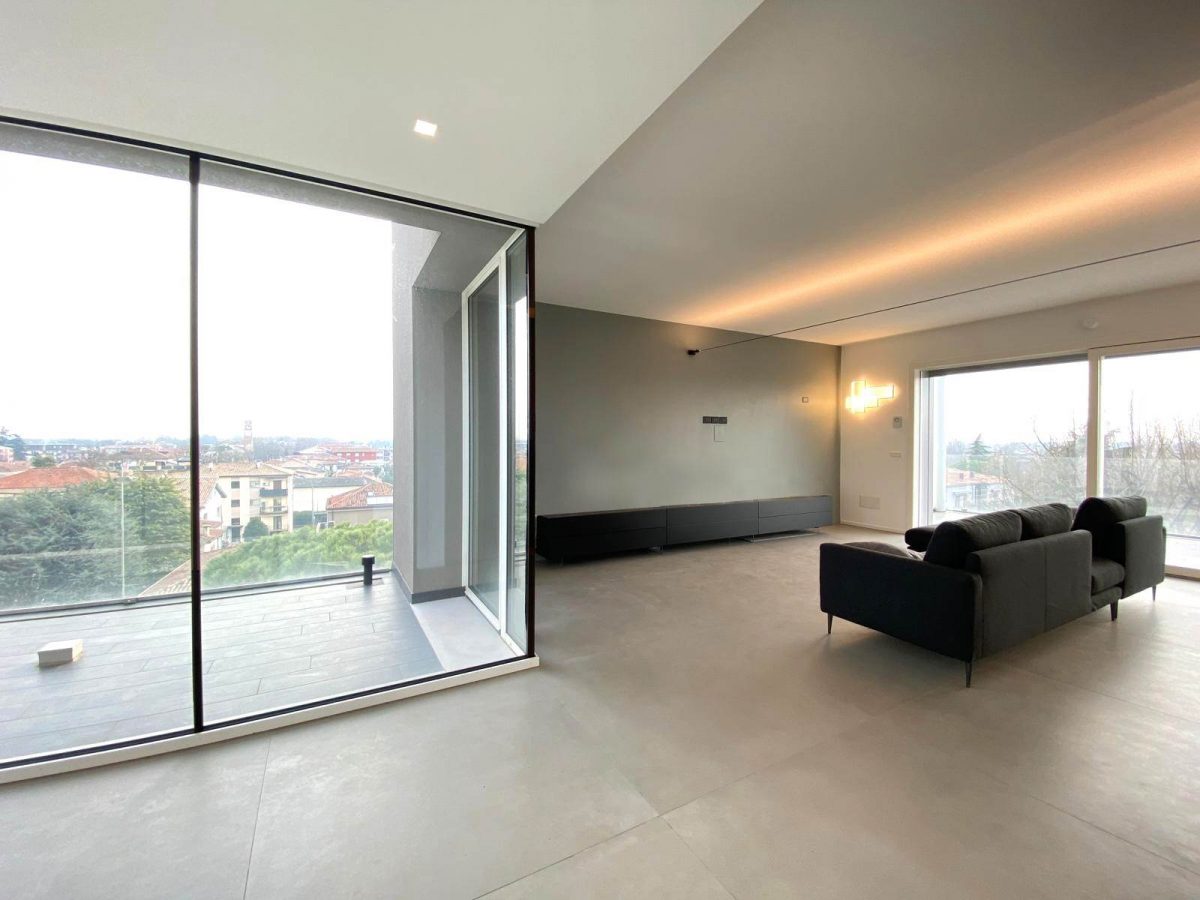 L’UNITA’ ABITATIVA RICOPRE L’INTERO PIANO DELLA PALAZZINA E SI COMPONE IN INGRESSO SU AMPIA ZONA SOGGIORNO-COTTURA, DI OLTRE 60 MQ, AMPIA VETRATA SULLO SKYLINE CITTADINO, CUCINA, DIVISA DA UNA PARETE SCORREVOLE IN VETRO.