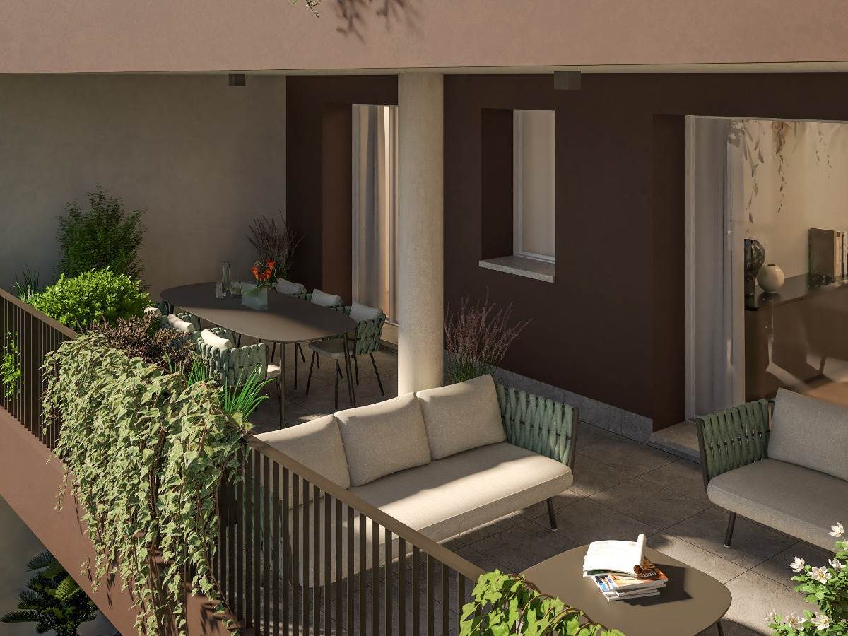 Disponibili diverse soluzioni: mini appartamento, appartamenti con due o tre camere, tutti con terrazze abitabili o giardino privato, garage doppio al piano interrato ed un posto auto al piano terra.