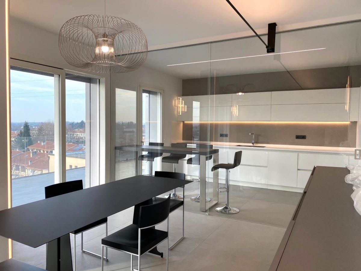 L’UNITA’ ABITATIVA RICOPRE L’INTERO PIANO DELLA PALAZZINA E SI COMPONE IN INGRESSO SU AMPIA ZONA SOGGIORNO-COTTURA, DI OLTRE 60 MQ, AMPIA VETRATA SULLO SKYLINE CITTADINO, CUCINA, DIVISA DA UNA PARETE SCORREVOLE IN VETRO.